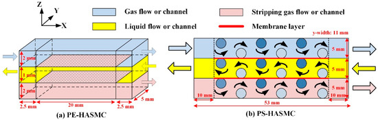 Mass transfers in (a) parallel-flow and (b) cross-flow HASMCs.