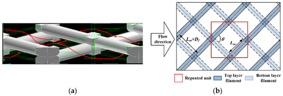 The flow paths (a) and geometric characteristics (b) of the net-type spacers.