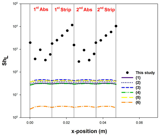 For comparison with correlations from literature, Sherwood number (Sh) was used. Sh is defined as: