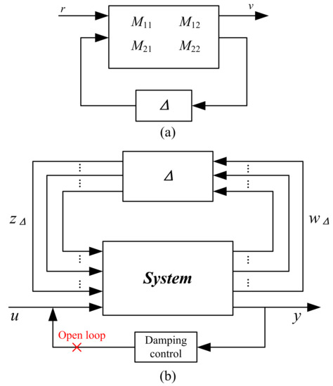 In Figure 6a, represents the system complex transfer matrix. represents the system uncertainties. The relationship between r and v can be described as: