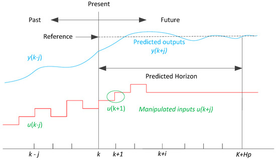 Taking as the expected output at time k + j, the objective of MPC is to minimize the absolute error between the future output and the expected output , as shown in Equation (11).