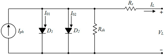 From Equation (2), DDM is characterized by seven parameters: Iph (photocurrent), I01 (diode saturation current for diode D1), I02 (diode saturation current for diode D2), Rs (series resistance), Rsh (shunt resistance), (diode ideality factor for diode D1), and (diode ideality factor for diode D2). Similarly, estimation of these seven parameters is essential for modeling of PV cell.