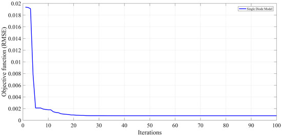 Convergence of HPSOSA for parameter estimation of single diode PV cell circuit.