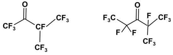 The fluoroketones (FKs) or perfluorinated ketones have a crude formula of the form CnF2nO, in which n is an integer ranging from 3 to 8 (Figure 5). Table 9 summarizes the important characteristics of two perfluorinated ketone candidates.