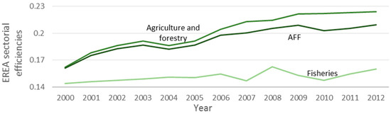 AFF sector and subsectors efficiencies by EREA approach.