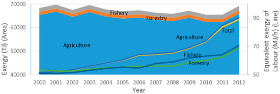 - Chen, G.Q.; Jiang, M.M.; Yang, Z.F.; Chen, B.; Ji, X.; Zhou, J.B. Exergetic assessment for ecological economic system: Chinese agriculture. Ecol. Model. 2009, 220, 397–410. [Google Scholar] [CrossRef]