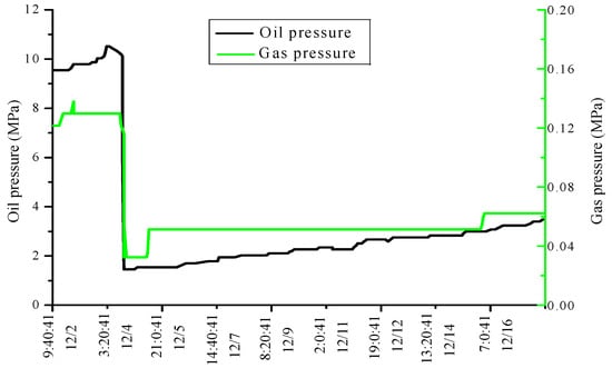 Real-time comparison between gas pressure and oil pressure during the mining process.