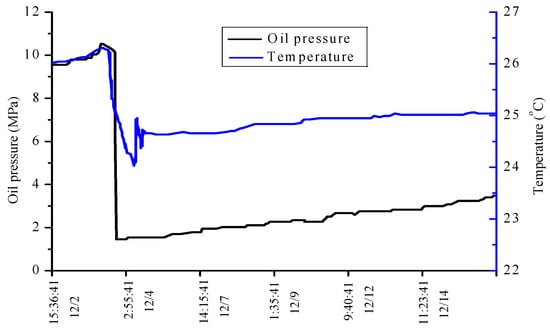 The initial oil pressure in the capsule is 10 MPa when the pressure sensor is installed. It takes time for it to be stabilized and fully contact with the surrounding coal. After it was stabilized, the oil pressure in the capsule was about 8.6 MPa. The change of oil pressure was about 0.1 MPa in three days, which verifies the stabilization status. The pressure value can be treated as close to the coal stress in the borehole. In Figure 7 and Figure 8, the oil pressure can be seen as the same as the coal stress.