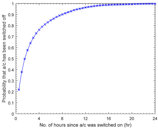 Cumulative probability function for a/c switch off-behaviour as a function of duration on.