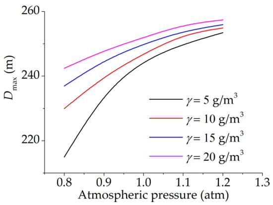 The variation of Dmax with changing of temperature and atmospheric pressure.