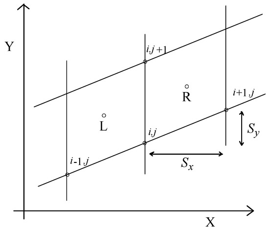 In the above equations, and are the surface borders in the and directions (see Figure 1) and is the enthalpy. which includes the flow conservation variables in 2D conditions is expressed by Equation (13):