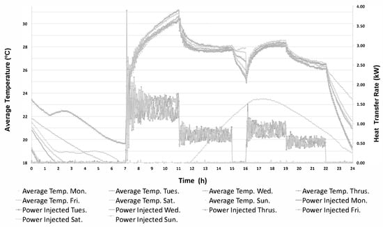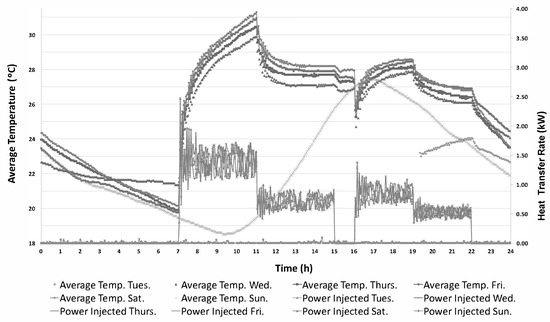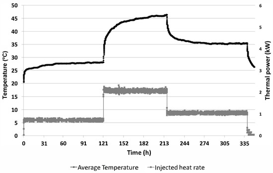 - In the first place, an experiment was performed to characterize the pile (Section 3.1) so that it could allow to extract the main parameters (see Table 3) to carry out simulations by means of computer software later. To this end, thermal heat was injected into the energy pile regulating three different thermal leaps with constant power, simulating the behaviour of the pile in a cooling system. Subsequently, a parametric adjustment was made by a simulation of TRNSYS to validate the simulated behaviour with the measured behaviour of the test.