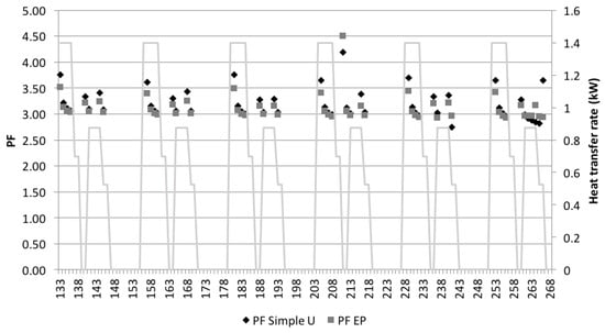 - heat pump capacity at current conditions. The initial conditions were assumed as 20 C of pipes water temperature and a pipes volume of 0.3