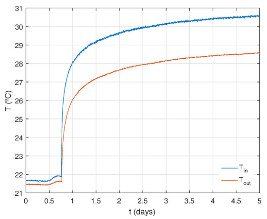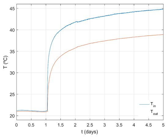 In regards to the improvement of the traditional TRT methods, the inclusion of a PID to control heat injection achieves its objective by smoothing the effects of ambient temperatures (see Figure 3 and Figure 4). In this way, the constant injected heat rate requirement of ILS [4,13] and FLS [6] methods is satisfied and, hence, it is possible to avoid the need for further processing of data as proposed by [5].