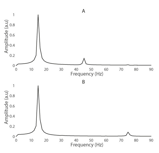 Normalised fast Fourier transform (FFT) plot of induced phase voltage at rated load: (A) pitch = 5/6; (B) pitch = 2/3.