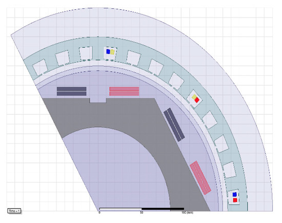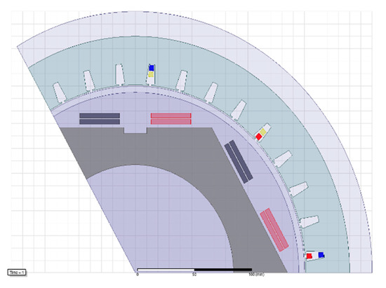 From field and performance analysis of Design 1, it is understood that the conductors corresponding to the same phase are at different field levels. The reason is attributed to the absence of the ferromagnetic yoke of the stator. In order to avoid field non-uniformity, a different stator design is proposed, as shown in Figure 11, wherein the stator conductors could be placed in an adjacent manner rather than a stacked manner.