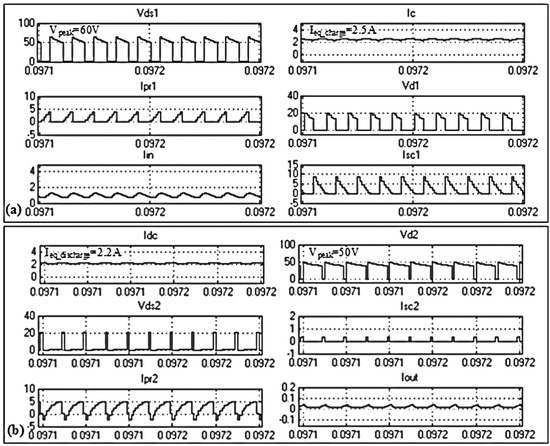 | Forward flyback DC–DC converter | Turns ratio, N1:N2 | 80:35 | - |