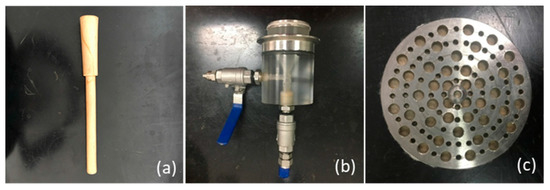 Accessories and tools: (a) Mallet, (b) Cone-shape joints and (c) porous plate.