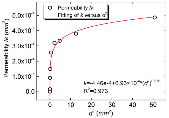 Relationship between mean particle diameter square and permeability.