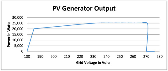 In Off Grid mode it is essential that all the connected DES synchronize properly and form a grid. For grid tied inverters, a reference voltage source is required for pumping PV power into the microgrid [21]. In the proposed network, the UPS will provide the reference voltage and help the PV inverter to build power. Once the grid is formed, the stability of the grid is to be maintained by proper control of voltage (V), frequency (F), active power (P) and reactive power (Q). The grid impedance will be checked by PV inverters to sense the grid presence. The PV inverter’s active power (P) is controlled as a function of frequency (F) to ensure sustained operation in islanded mode. Figure 13 shows the graph for power versus frequency control to maintain the microgrid stability. When the microgrid frequency reaches a Fstart (50.2 Hz) then the PV inverter starts to reduce the active power generation. Further, if the microgrid frequency increases and reaches a maximum allowable limit Fstop (54 Hz), then the PV inverter disconnects from the microgrid network. The slope will define the derating as % power reduction with regards to change in frequency. The slope can be configured by the user through the HMI.
