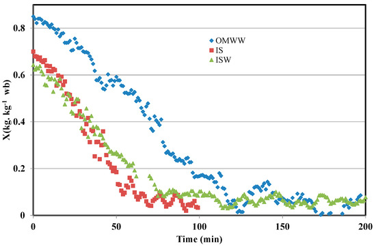 - Doymaz, I.; Gorel, O.; Akgun, N.A. Drying Characteristics of the Solid By-Product of Olive Oil Extraction. Biosyst. Eng. 2004, 88, 213–219. [Google Scholar] [CrossRef]