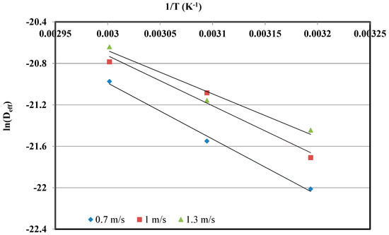 4.3. Diffusion Coefficient and Activation Energy Determination