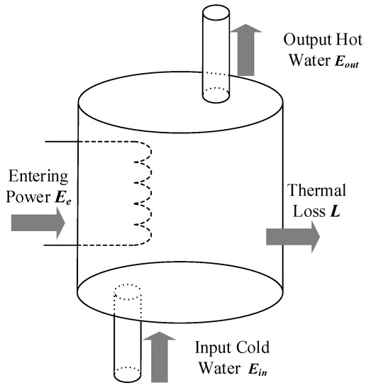 where Ee represents for the input electrical energy (J), Eout and Ein are the output hot water thermal energy (J) and the input cold water thermal energy (J), and L is the thermal loss (J) of the tank.