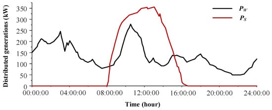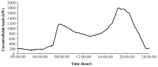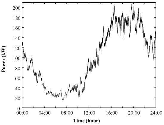 In addition, in this micro grid, distributed generations (photovoltaic power PS and wind power PW) and residential uncontrollable loads measured by Tianjin University will be jointly used to verify the efficacy of the proposed load scheduling method. Table 2 and Table 3 are the data sheet of the photovoltaic (PV) system and the wind power system. Figure 5 shows the daily renewable power generation curves and Figure 6 shows the micro-grid daily uncontrollable electrical load curve.