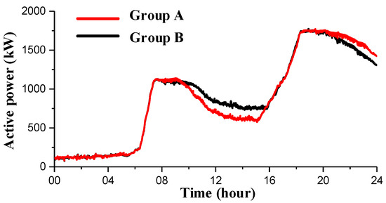 With the increase of domestic electric water heaters which participate in load scheduling, the optimization results can be different. Figure 12 shows optimization results of real time total active power supplied by the external grid system of group A and group B (defined in Section 6).