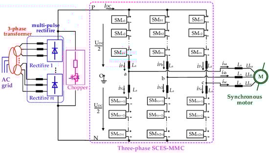 This paper is organized as follows. Section 2 presents the structural characteristics and operation principles of SCES-MMC topology. In Section 3, the system control strategies including motor frequency controls and state of charge (SOC) balancing controls are explored in detail. To validate the feasibilities and effectiveness of the proposed topology and theory, extensive simulation results are demonstrated in Section 4. Finally, Section 5 reports the main conclusions.