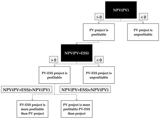 - In the first case, ESS is characterized by economics in which discounted cash inflows are greater than the relative discounted cash outflows. In this way NPV(ESS) is positive, and consequently, as defined in Equation (6), NPV(PV + ESS) > NPV(PV). If the investor opts to install a PV-integrated battery system, can obtain more profits than PV system.