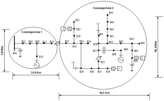 Due to the large geographical area in the modified IEEE (Institute of Electrical and Electronics Engineers) 34 node system, the system is divided into two regions because of the system characteristics. The real geographical conditions, with one being a low-density rural area and the other a high-density urban area in the system, made this division feasible. In the application carried out here, it was interesting, since the two regions considered present different characteristics, enabling us to test the potentiality of the proposed methodology.