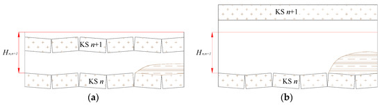 (2) After KS n fractures, KS n + 1 above it tends to fracture if its vertical distance to KS n is smaller than the corresponding HoL (Figure 8a). If the strata between them are sufficiently thick and able to withstand relatively large deformation, fracturing of KS n will not result in fracturing of KS n + 1 (Figure 8b).