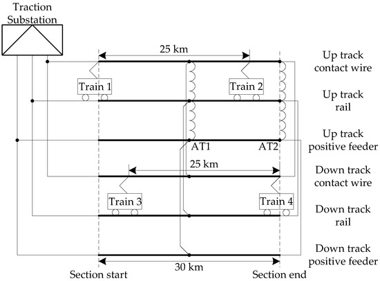 - Hill, R.J.; Cevik, I.H. On-line simulation of voltage regulation in autotransformer-fed AC electric railroad traction networks. IEEE Trans. Veh. Technol. 1993, 42, 365–372. [Google Scholar] [CrossRef]