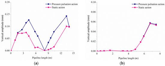 It can be concluded from Table 7 that the maximum horizontal or vertical amplitude of each pipe are mostly produced in the elbow and tee, and the horizontal amplitude of the elbow is larger than the vertical amplitude. However, the vertical amplitude is greater than the horizontal amplitude at the tee of the straight pipe section. In addition, the following conclusions can be obtained: