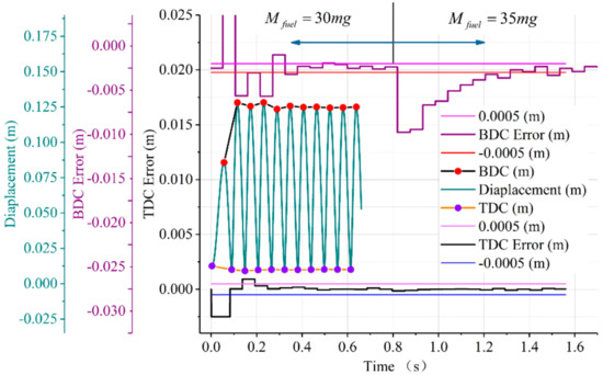 where, E1 and E2 are the sum of energy losses in expansion and compression stroke, respectively. They are calculated by accumulating iteration. BDC* and TDC* are the target dead center position, BDC and BDC are the actual dead center position. The TDC error is the difference between the target TDC position (TDC*) and the actual TDC position (TDC), and the BDC error is the difference between the target BDC position (BDC*) and the actual BDC position (BDC).