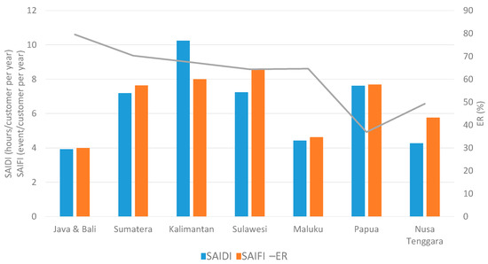 However, as mentioned above, there is a lack of information about the reliability of the electricity supply in Indonesia. Therefore, our objective is determining the actual reliability of distribution networks in urban areas of Indonesia with different ERs using the typical indicators of SAIDI and SAIFI (IEEE Standard 1366-2012).