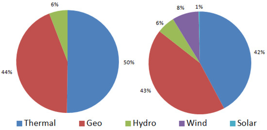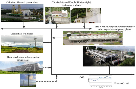 Of this fossil energy, 31% is used in the production of electricity and 40% in transportation, demonstrating that these sectors are responsible for more than 70% of fossil energy use, and, consequently, for the GHG emissions from the island [43]. The solution to this problem is to integrate more renewable production in order to reduce production costs, due to the decrease in the use of fossil fuels, with a consequent reduction in the environmental footprint and the increment of benefits in economic and social development of the island. In this case, the power plants considered are summarized in Figure 1:
