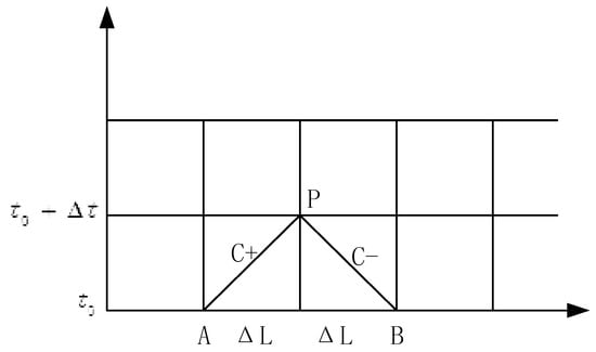 The details of all the symbols in these equations are given in the nomenclature. The method of characteristics (MOC) is applied to the partial differential equations (PDEs) as shown in Equations (1) and (2), and the partial differential terms associated with the flow velocity and the pressure are reduced to ordinary differential ones compatible with two characteristics lines C+ and C− as shown in Figure 2.