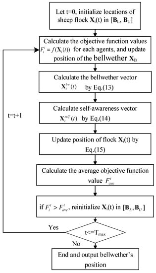 - Step 6: Judge whether sheep need to be eliminated according to the Equation (16) and reinitialize the same number of new sheep between .