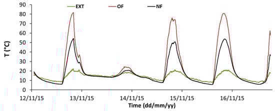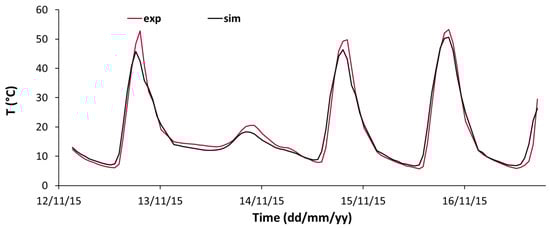 As a first validation check, the air temperature trend inside the old framed box (OF) was compared with the simulation data provided by the STB original model to verify the old calibration accuracy. A RMSE of 2.72 °C was obtained over the whole period of test with a NRMSE of 4% indicating a good agreement with the original calibration [].