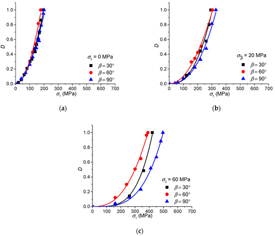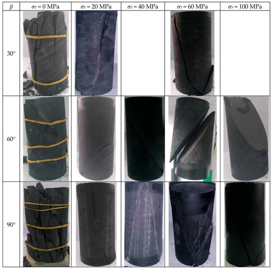 | β (°) | Sample No. | Confinement σ3 (MPa) | Peak Axial Stress (MPa) | Peak Axial Strain (%) |