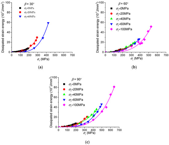 - Huang, D.; Li, Y. Conversion of strain energy in Triaxial Unloading Tests on Marble. Int. J. Rock Mech. Min. Sci. 2014, 66, 160–168. [Google Scholar] [CrossRef]