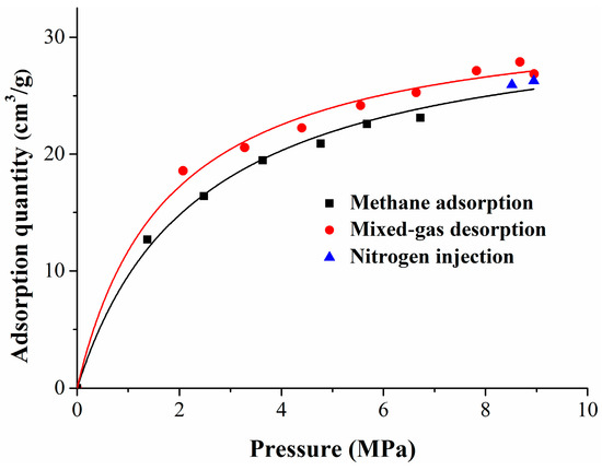 Previous studies have shown that the adsorption quantity of the coal matrix with regards to different gases is different, and that the adsorption quantity of methane is higher than that of nitrogen [21,41].