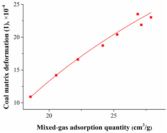 Relationship between coal matrix deformation and mixed gas adsorption quantity.