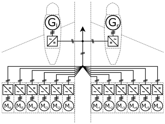 As a reference, the concept of two engine-integrated generators is proposed (see Figure 4). Teichel et. al. [7] showed the design of a permanent magnet synchronous generator (PMSG) used for the power supply of the EPHLS.