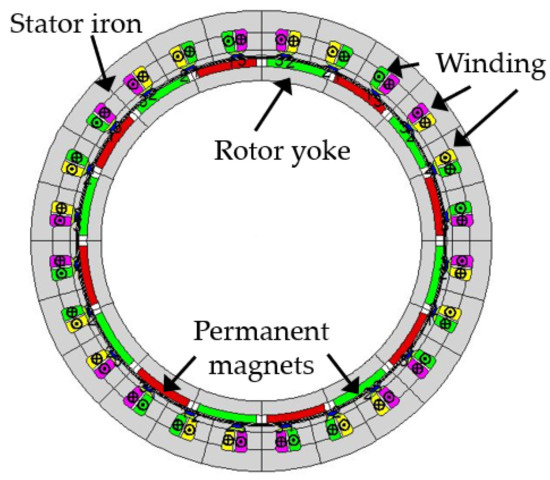 Cross-section of permanent magnet synchronous generator (PMSG) with concentrated winding.