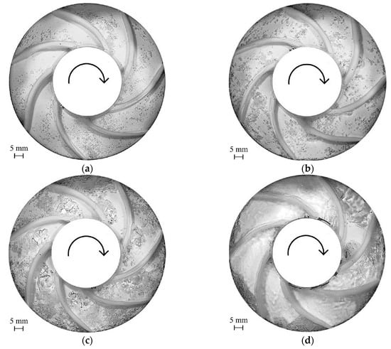 - Verde, W.M.; Biazussi, J.L.; Sassim, N.A.; Bannwart, A.C. Experimental study of gas-liquid two-phase flow patterns within centrifugal pumps impellers. Exp. Therm. Fluid Sci. 2017, 85, 37–51. [Google Scholar] [CrossRef]