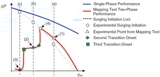 ESP two-phase pressure increment []. (a) Surging test; (b) mapping test.