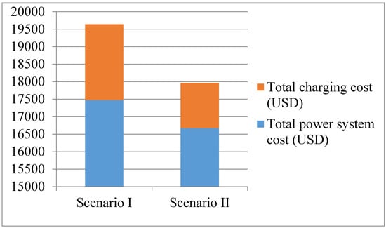 Total charging cost and total power system cost for one hour in the absence of PHEVs (we only consider battery-only EVs in this case study).